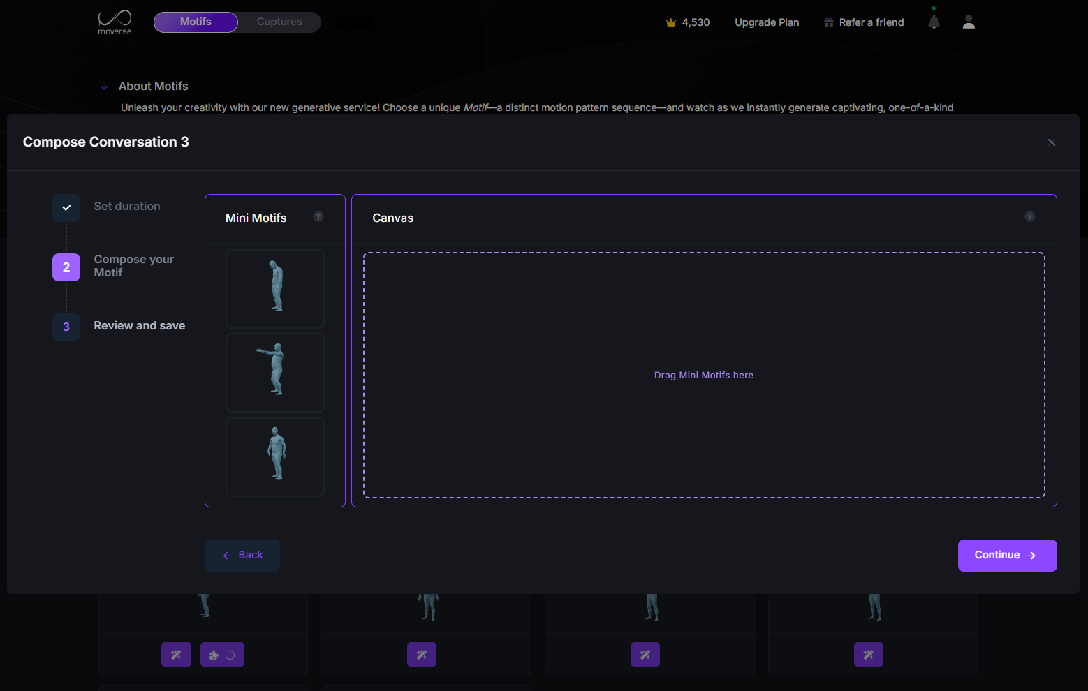 - Mini Motifs: Click on each generated proposal to preview its animation.
