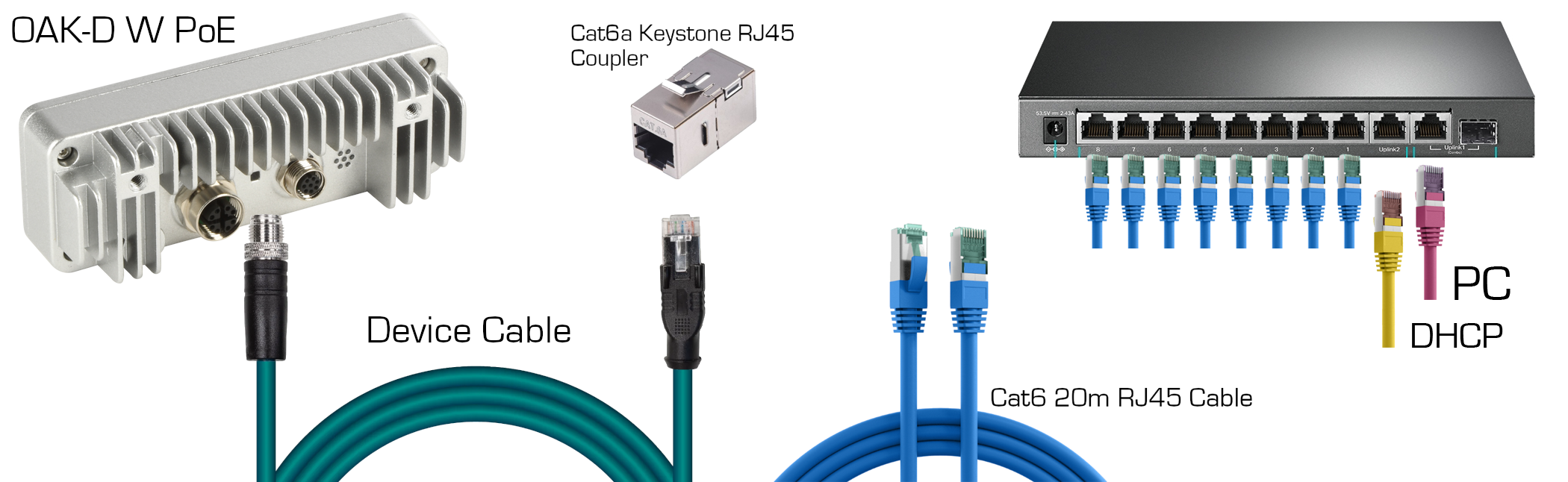 - (Only for OAK-D W PoE) β 8 x Cat6a Keystone RJ45 Coupler, Shielded, Female to Female