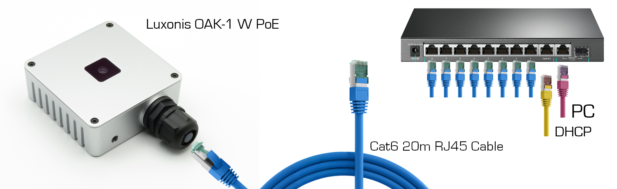 - 8 x Luxonis Cameras: We officially support OAK-1 W PoE, and OAK-D W PoE.